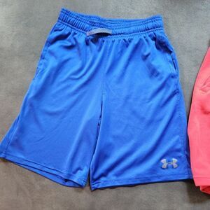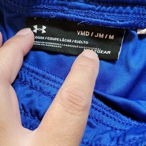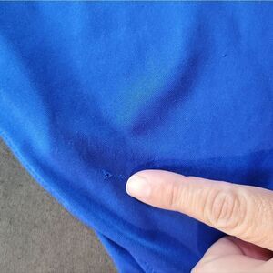 the blue has a tiny hole as pictured and little tugs on butt the red one nike is faded. both size M