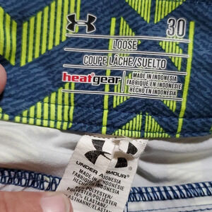 loose fit excellent like new condition yellow blue pattern board shorts size 30 by under armour