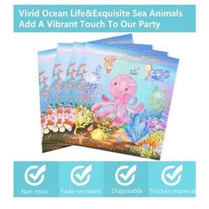 The product is a set of Under the Sea birthday party supplies from Recheel, featuring ocean-themed paper plates that serve 25 people. The plates are designed with vibrant underwater colors and provide a fun and festive decor for any birthday party or event. Made for schools or teaching supplies, this set is perfect for creating a memorable and unique celebration under the sea.