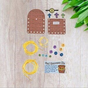 Includes 1/4" - 1/2" wooden beads, self-adhesive foam pieces, 2 1/4" pouch with touch fastener, two 30" satin cords and a 2 3/4" x 1 1/2" prayer card. All craft kit pieces are pre-packaged for individual use. Kits include instructions and extra pieces. Makes 12.