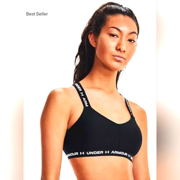 Under Armor Crossback Low Sports Bras, sz M, Bundle of Two (2), Black & Purple.