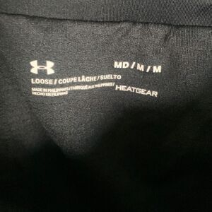 Under Armour black running shorts. Elastic waist as well as a drawstring inside.