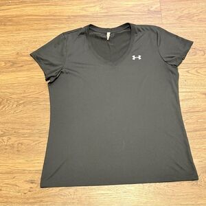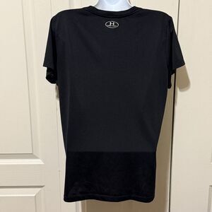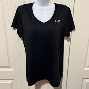 Experience the perfect blend of style and performance with this Under Armour black fitted short sleeve tee. Crafted from high-quality athletic material, it features a sleek V-neck design and a subtle silver logo on the chest, ensuring both comfort and a modern look.