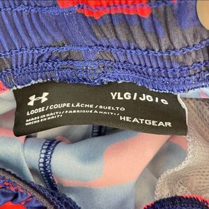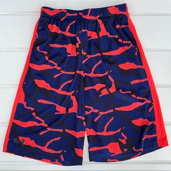 Under Armour Boys Printed Orange, Navy, and Black Printed Camo Shorts Size Large