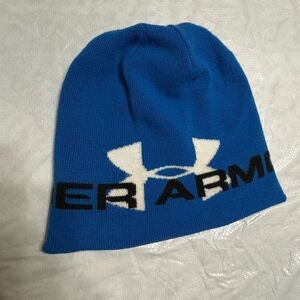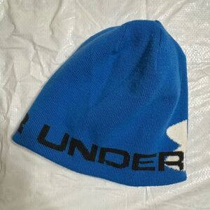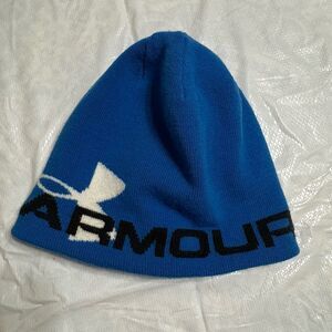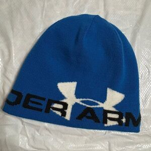 Under Armour Logo Blue Knitted Beanie Hat with Cold Gear Infrared fabric Lining. In great condition
