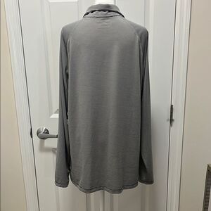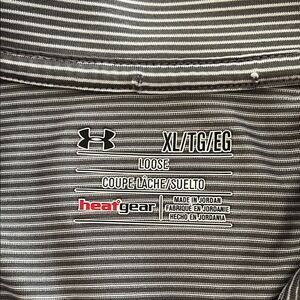 Under Armour Gray/White Striped Pullover, Size XL. This pullover with a sleek gray and white stripe design, features a quarter-zip front. Ideal for active or casual wear. EUC with no rips, tears, stains or holes. Smoke and pet free home (2622*)