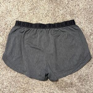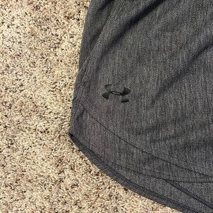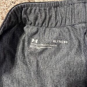 These shorts are made by Under Armour. They are gray with a black elastic waist band and pockets. Size XL and in very nice pre owned condition. Smoke and pet free home.