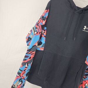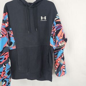 Under Armour Loose Fit Hoodie Aus Fleece Men's Size Medium Black Multicolor Sleeve