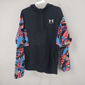 Under Armour Loose Fit Hoodie Aus Fleece Men's Size Medium Black Multicolor