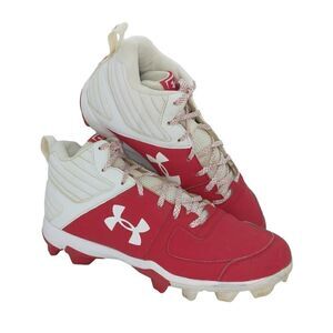 Under Armour Mens Pre-owned Lead Off Mid Red/White Baseball Cleats - sz. 9