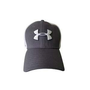 Under Armour Logo Golf Hat Flex Stretch Fitted Cap Size Men's M/L Gray White Golfer EUC