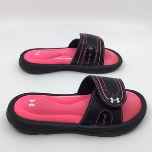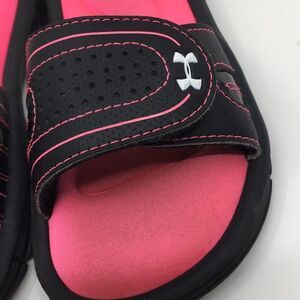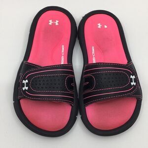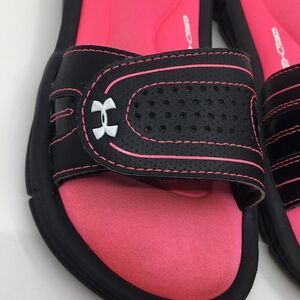 Under Armour Pink and Black Velcro 4D Foam Slides, US Size 13K