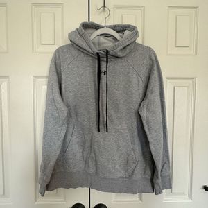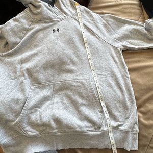 • light gray color, loose fit, functional drawstring, kangaroo pocket