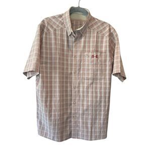 Under Armour Salmon Plaid Fishing Shirt Mens Size Large