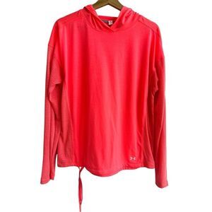 This cool lightweight mesh sleeves hoodie breathable fabric is new without tags. Bright orange /peach Under Armour Threadborne Train Twist Womens Running Hoody Marathon size Large,