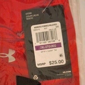 Under Armour UA Locker Tee Red Loose Fit Thin Breathable Womens Size 2XL