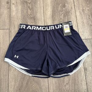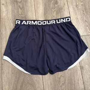 Experience ultimate comfort and performance with these Under Armour athletic shorts, featuring a lightweight design and a distinctive branded elastic waistband. The blue color with white trim detailing adds a classic touch, making them perfect for any workout or training session.