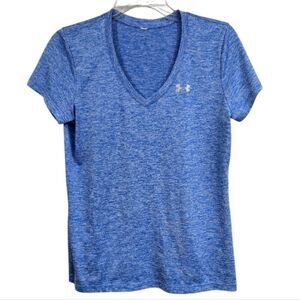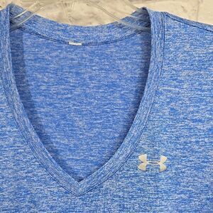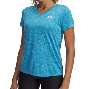 Under Armour Women's UA Tech Twist T-Shirt V-Neck SpaceDye Blue Loose Activewear