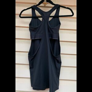 UnderArmour black double with bra attached workout top, good condition, gently used, size XS.
