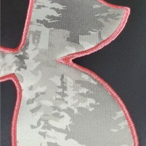 (O) Under Armour Black & Pink Pullover Hoodie Sweatshirt. Tree detailing on front emblem. No flaws. Very soft