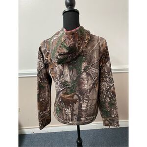 Lightly used camouflage hoodie. Hood is pink and logo is pink.