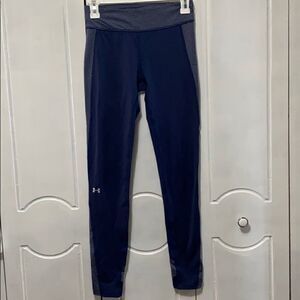 Under Armour Cold Leaf Compression Leggings, Navy Blue with Stripes size small in excellent condition.