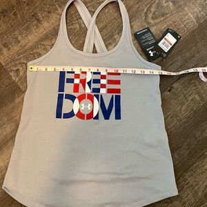 This listing is for a NWT's Under Armour Freedom Tank Top in grey, size XS.