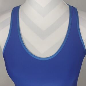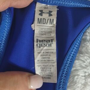 This blu with red stripes Under Armour Heat Gear Compression sports bra is a size Medium. 90% polyester 10% elastane and machine washable. Pre-owned and in excellent condition. All offers welcome.