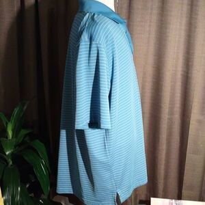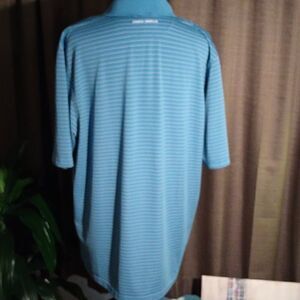 This Under Armour men's blue striped short sleeve polo shirt is a size XXLarge. Has white UA logo on left front chest and Under Amour stitched in white on back shoulder. 97% polyester 3% elastane and machine washable. Pre-owned and in like new condition. All offers welcome.