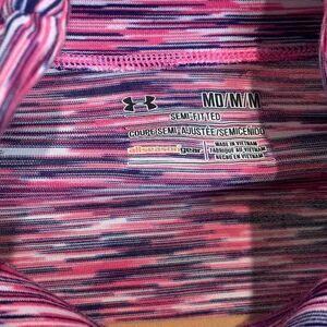 Pink and purple marked Under Armour half zip pullover. Semi fitted size M. Pit measures 17”. Dri wicking fabric. Very good condition!