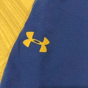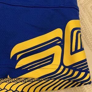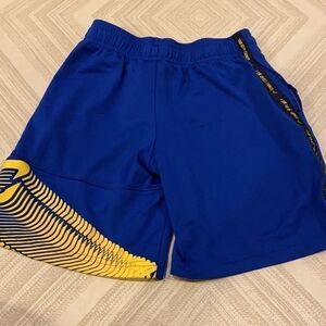 Under Armour SC Boys Blue Drawstring Shorts. Yellow accent. Side pockets. Size S. Gently worn.