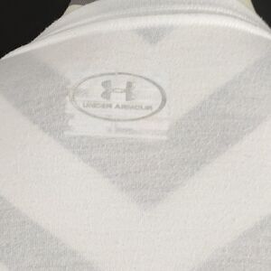 This Under Armour Simi-fitted short sleeve white "Hero" tee is a size XSmall. For Breast Cancer Awearness. 65% polyester 35% rayon and machine washable. Pre-owned and in excellent condition. All offers welcome.