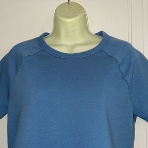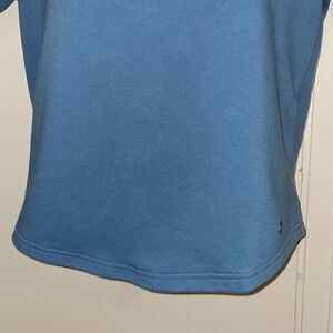 Under Armour blue short sleeved sweatshirt with opening on upper back