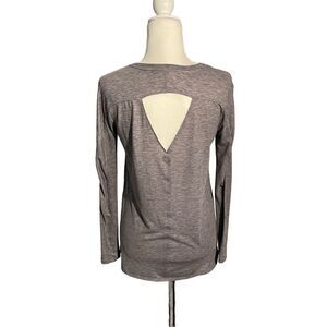 Under Armour gray long sleeve shirt with cut-out back. No size tag so please see measurements for sizing.