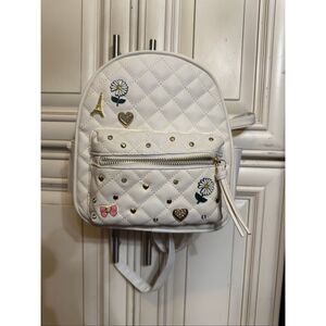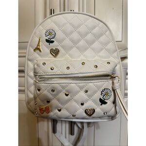 UnderOneSky Women's Quilted Heart & Flower Charm Mini Backpack White Small