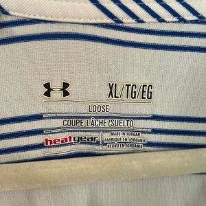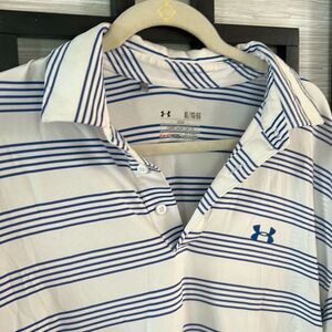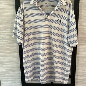 Under armor blue and white striped men's polo short sleeve T-shirt collared size Xl