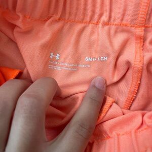 Under Armour orange and white active running shorts in a size small with pockets #sportswear