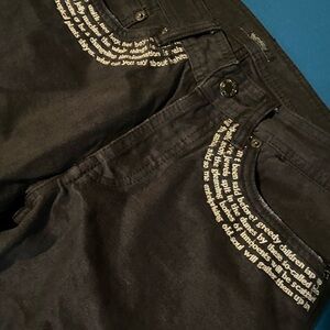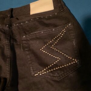 Trendy black jeans with a distressed look. Perfect for casual outings.
