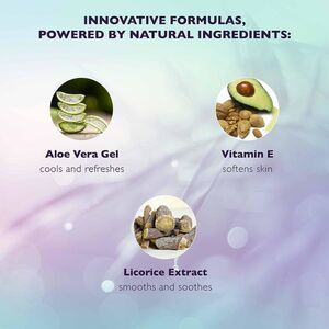 Aloe Vera Gel, Vitamin E and Licorice Extract soothe, soften and instantly refreshes skin