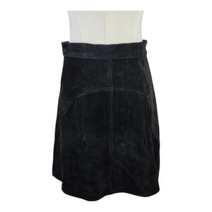 Understated Leather Black Suede Mini Skirt Brass Button M Western Boho