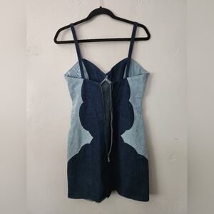 Understated Leather Cotton Denim Two Tone Back Zip Mini Dress XS