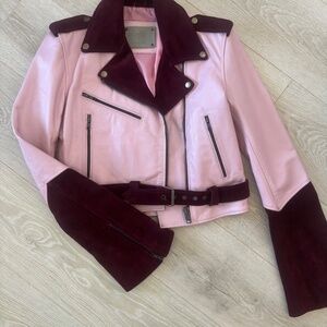 Understated Leather Pink and Maroon cropped suede/leather bell sleeve jacket