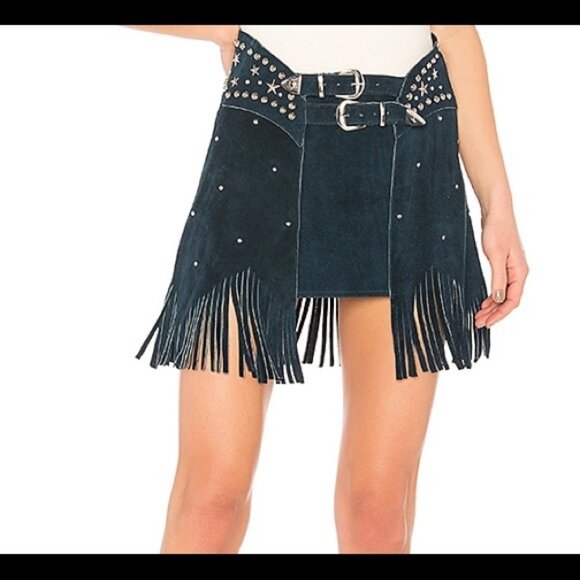 Paris Texas skirt. Understated leather brand. Elevate your style with this chic black fringe skirt. Featuring eye-catching studded details, it's perfect for any occasion. Pair it with your favorite top for a stunning look. Worn but in excellent condition. Size M. Estimated size 4 to 6.