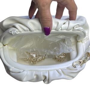 Understated Leather small white handbag detachable gold chain shoulder bag