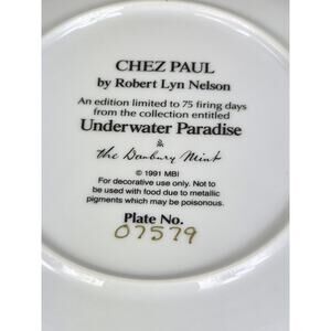Underwater Paradise Chez Paul Dolphin Year 1991 Porcelain 8" Plate Wall Decor