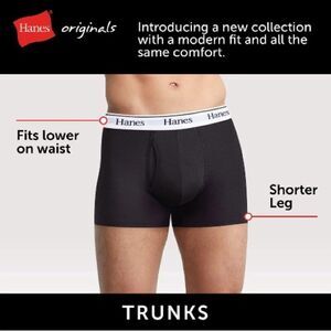 BRANDED WAISTBANDS, ASSORTED COLORS - Value 3-pack includes trunks in assorted solids and prints with contrasting waistbands that feature the Hanes logo.