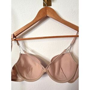 No stains or holes but there are very minimal pilling on the exterior of the bra - see pics 6 and 7.