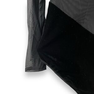 Undress Code Sheer and Velvet Long Sleeve Black Bodysuit Chevron Large
