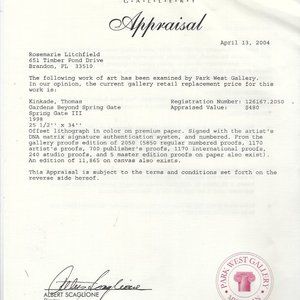 Unframed "Gardens Beyond Spring Gate" by Thomas Kinkade (January 19, 1958 – April 6, 2012),