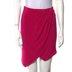 Bold and stylish, this Ungaro tiered mini skirt in Barbie pink features a draped front design with an overlapping hem for a flattering silhouette. Made from lightweight fabric, this vibrant skirt is perfect for adding a pop of color to any wardrobe. Ideal for casual outings, brunch, or evening wear.